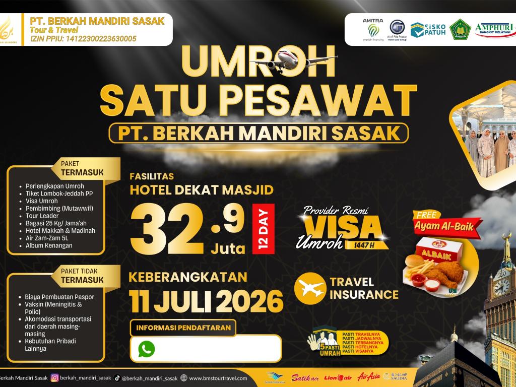 Paket Umroh 11 Juli 2026 (Satu Pesawat)